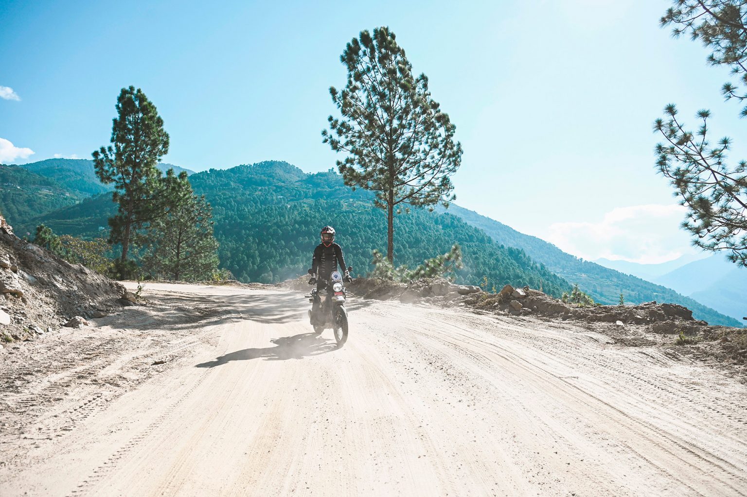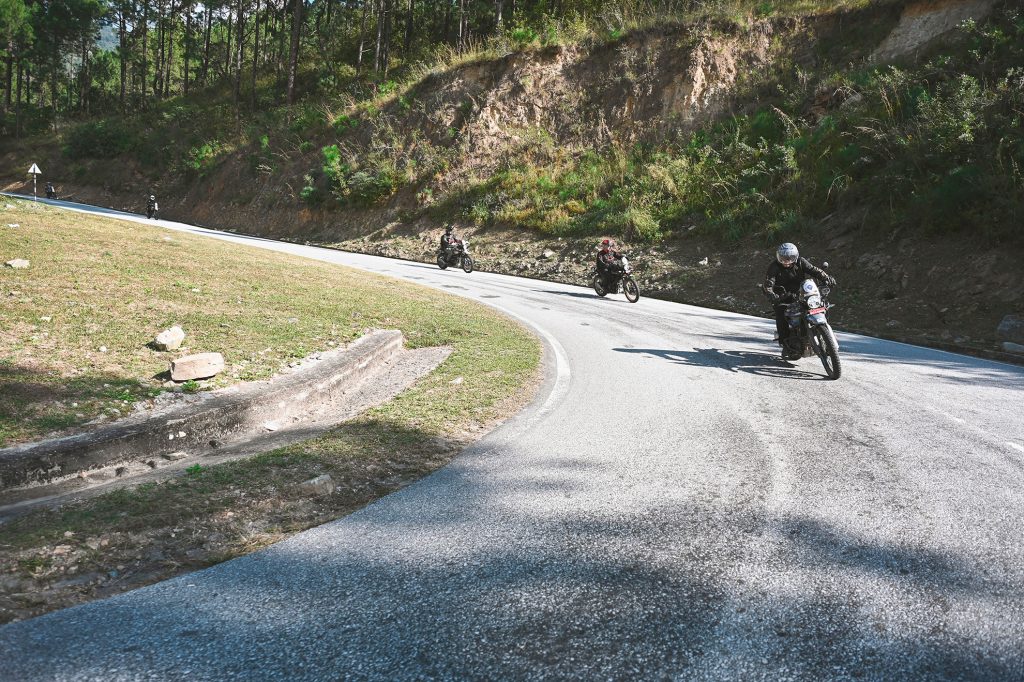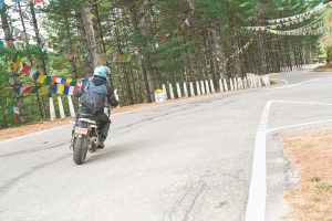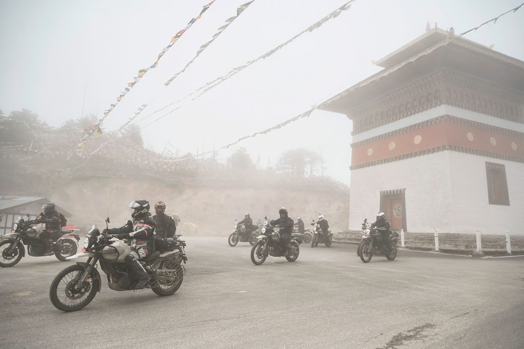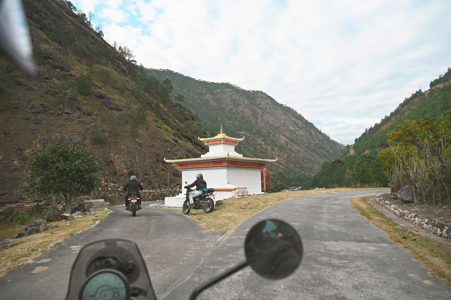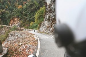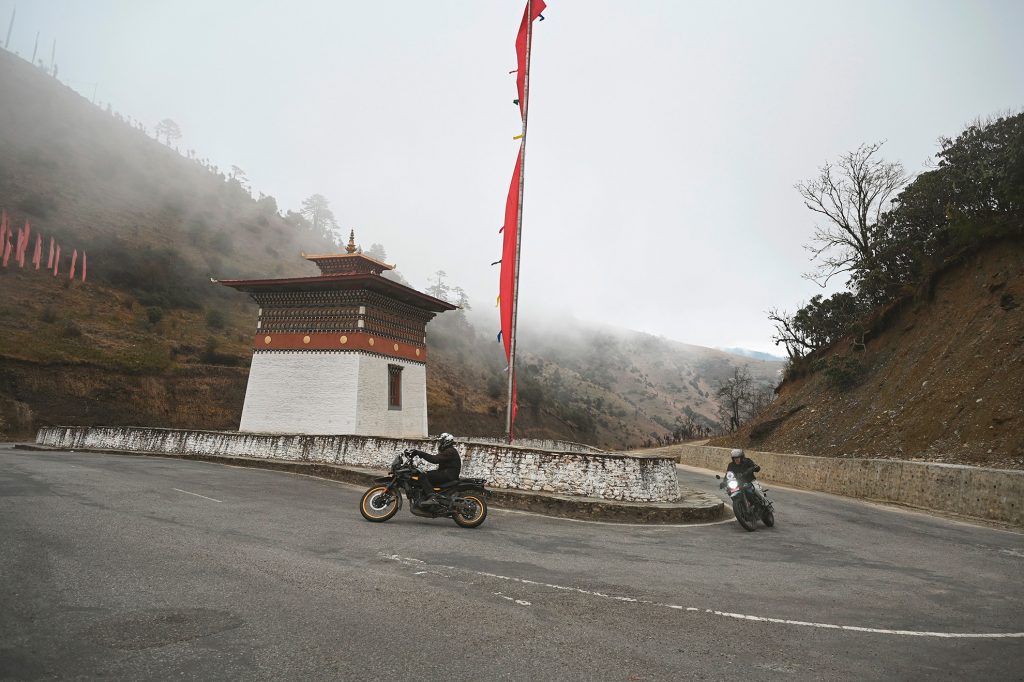 Leaving Punakha after breakfast, you follow the river briefly before the road begins to climb steadily out of the warm subtropical valley. Almost immediately, the riding character changes — tighter bends, cooler air, and long mountain gradients as you head east into Bhutan’s central highlands.